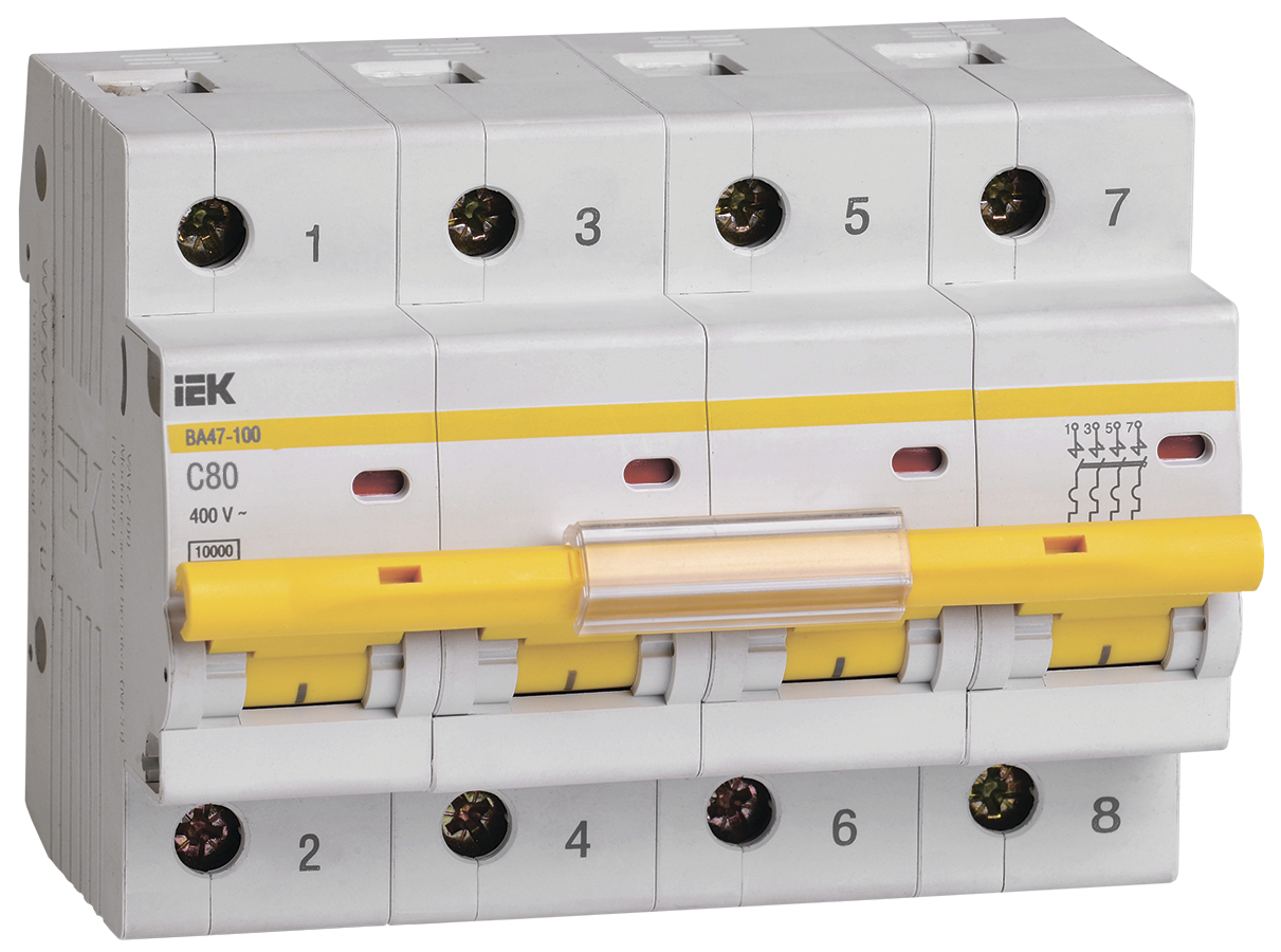 Автоматический выключатель ВА47-100 4Р 80А 10кА характеристика С IEK