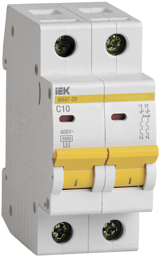 Автоматический выключатель ВА47-29 2Р 10А 4,5кА характеристика С IEK