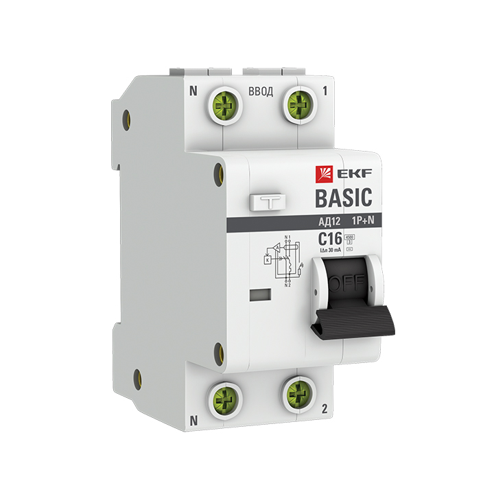 Дифференциальный автомат АД-12 1Р+N 16А 30мА характеристика C EKF Basic