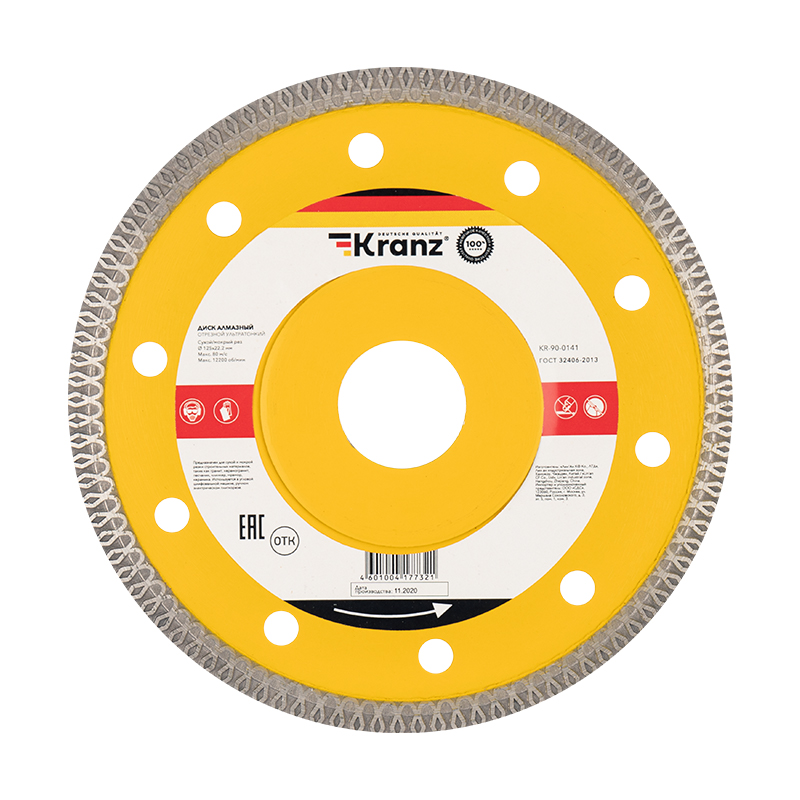 Диск алмазный отрезной ультратонкий 125x22,2x1,4x10 мм KRANZ в Уссурийске