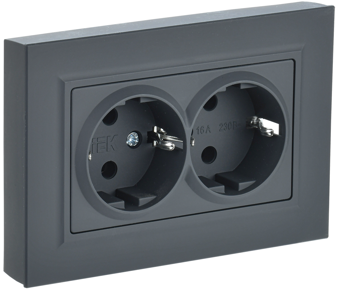 Розетка двойная с з/к со шторками 16А BRITE IEK графит в сборе