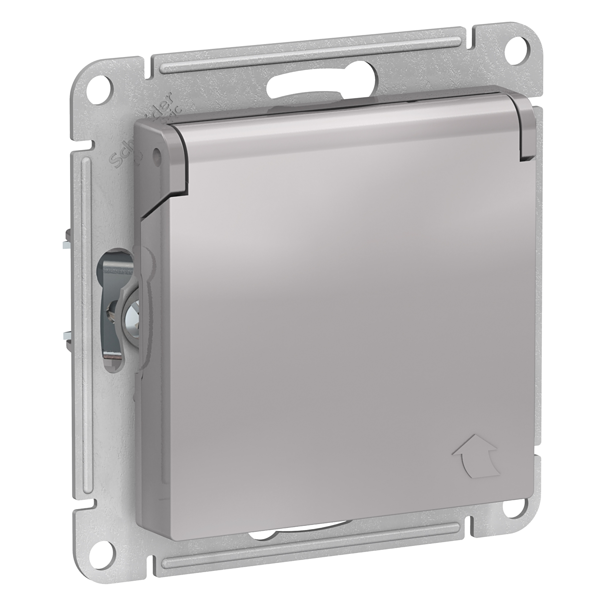 Розетка одинарная AtlasDesign SE IP20 с заземлением со шторками с крышкой алюминий