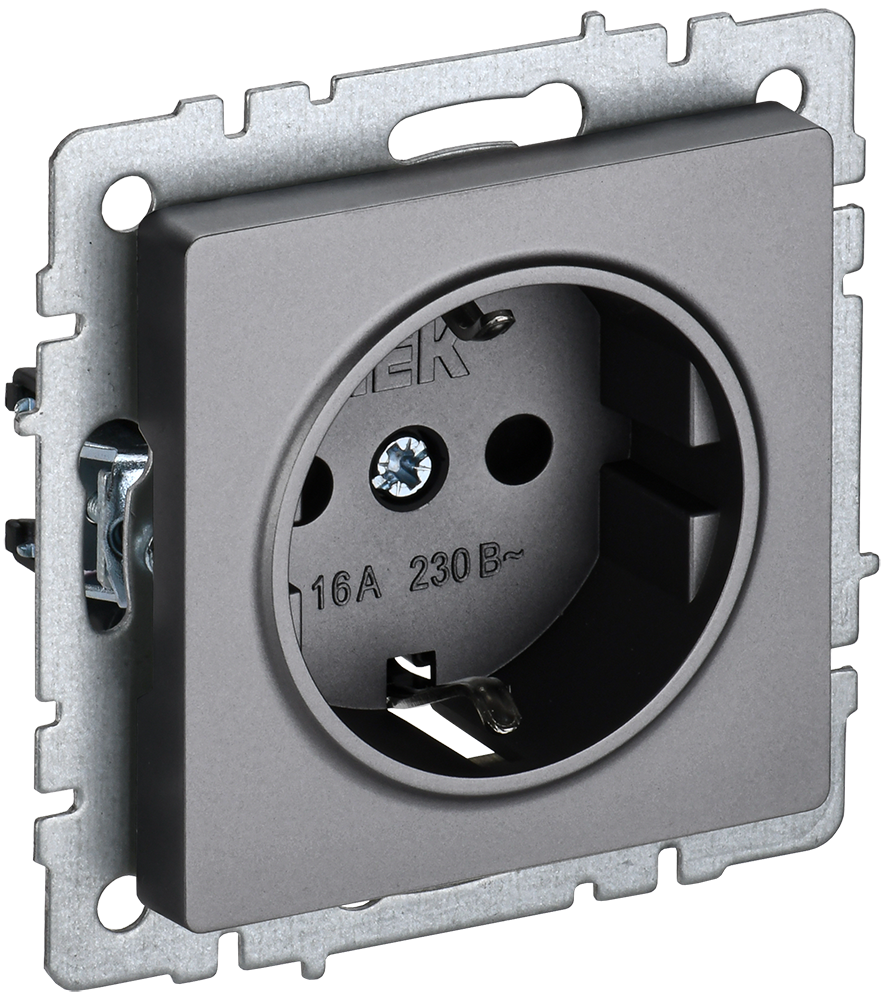 Розетка одинарная с з/к 16А BRITE IEK сталь