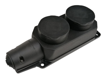 Розетка двойная с заземлением каучук с заглушками 16А IP44 черная 9322 IN HOME