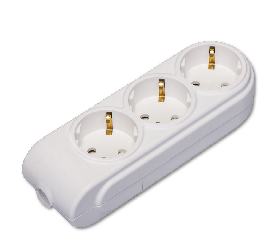 Выпускается в нескольких модификациях: с заземлением / без заземления, с выключателем / без выключателя, трехместные / четырехместные.