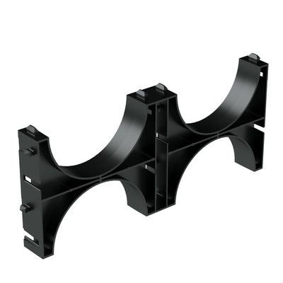Назначение держателя расстояния (кластера) для двустенных труб - закрепление труб в определенном положении и сохранение между ними фиксированного расстояния. Кластер имеет пазы для двух труб диаметром 160 мм. Если необходимо, кластеры могут быть соединены между собой, чтобы разместить большее количество труб.