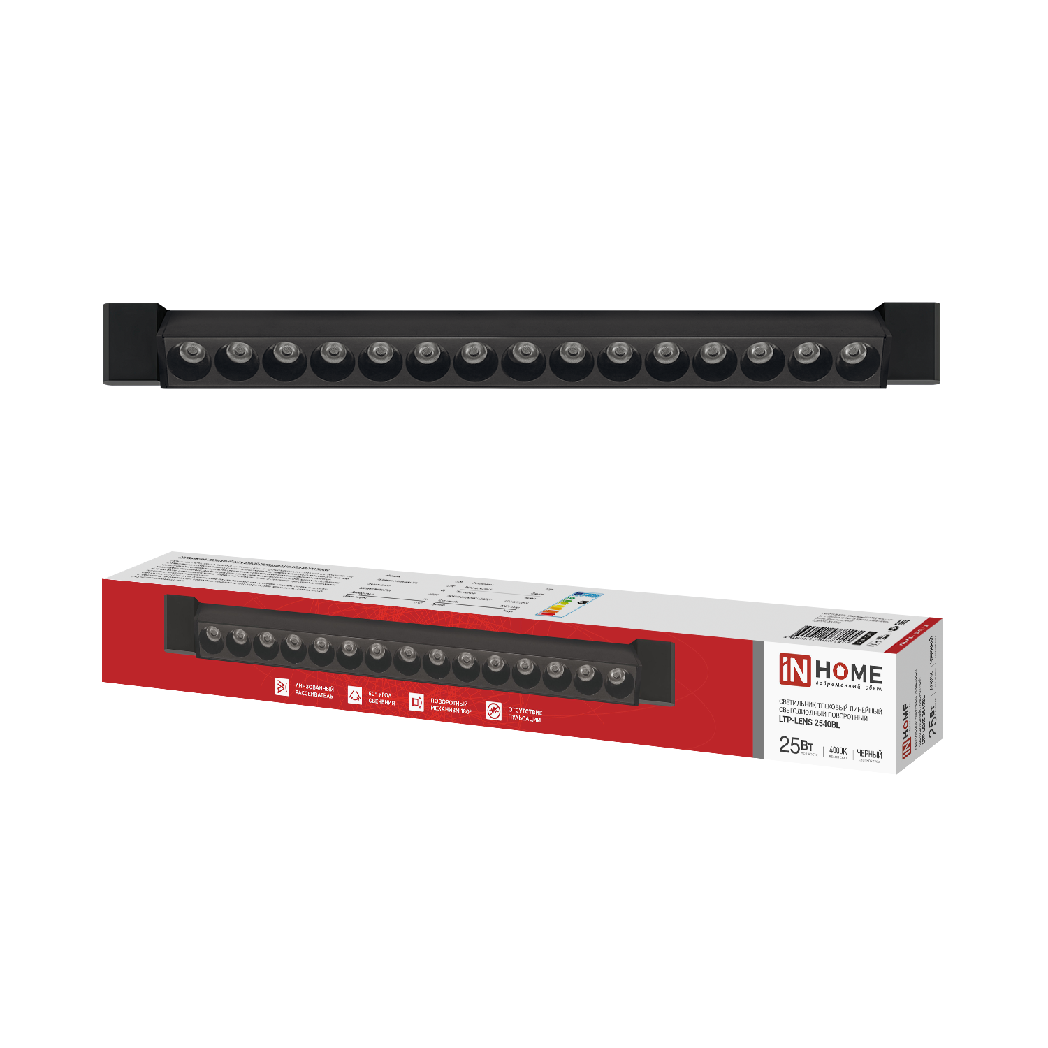 Светильник трековый линейный светодиодный поворотный LTP-LENS 1840BL 18Вт 4000К 60гр 333мм черный IN HOME в Уссурийске