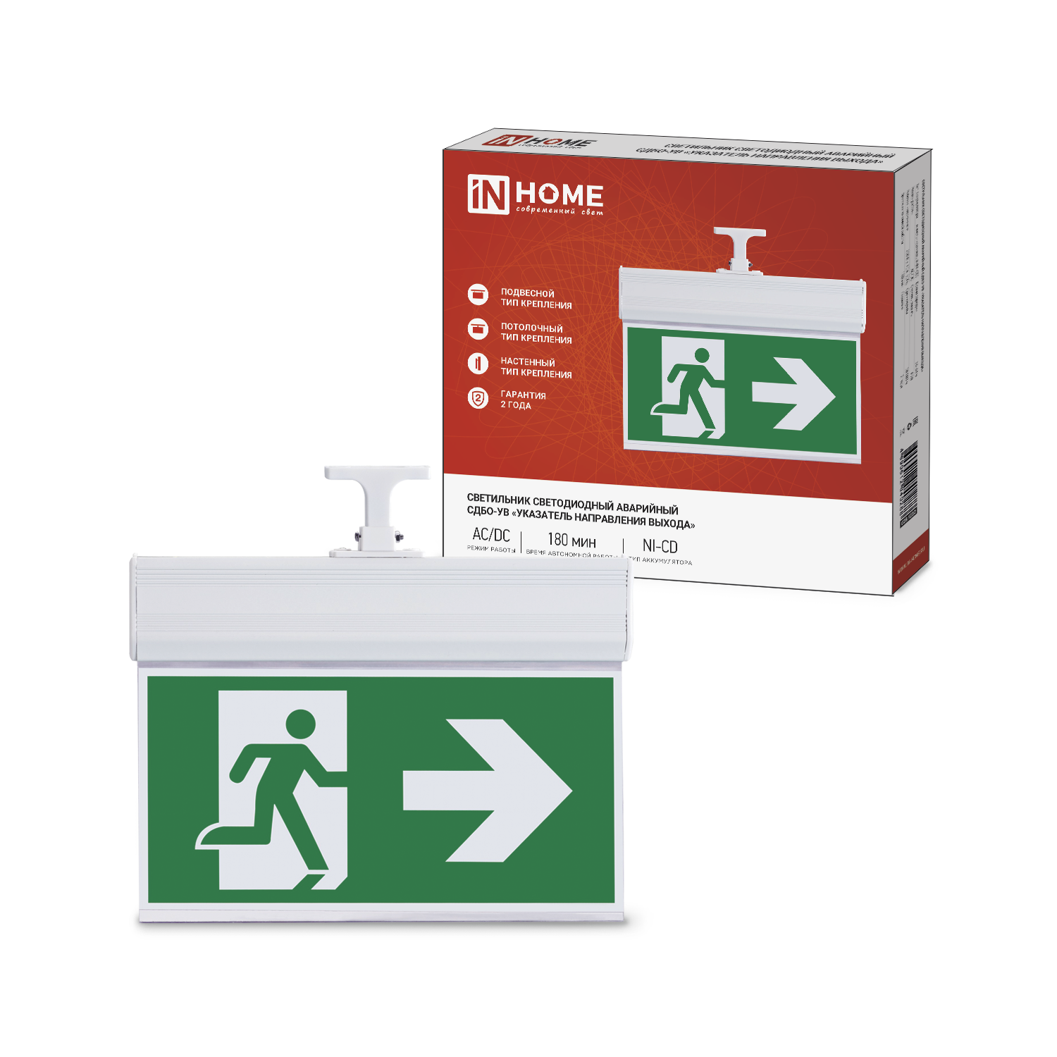 Светильник светодиодный аварийный СДБО-УВ "УКАЗАТЕЛЬ НАПРАВЛЕНИЯ ВЫХОДА" 3 часа NI-CD AC/DC двусторонний IN HOME
