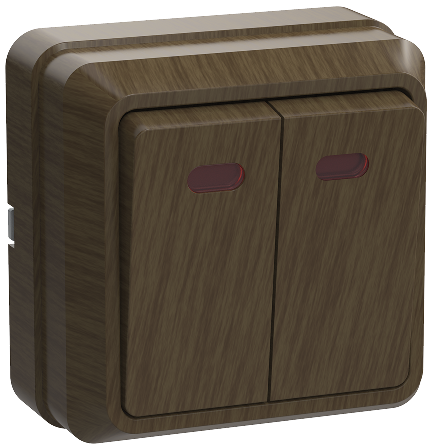 ВС20-2-1-ОД Выключатель 2-клавишный с индикацией 10А ОКТАВА (дуб) IEK