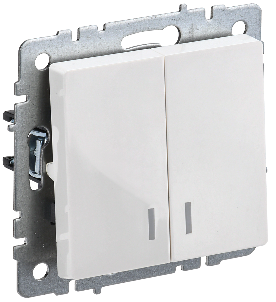 Выключатель двухклавишный с подсветкой 10А BRITE IEK белый
